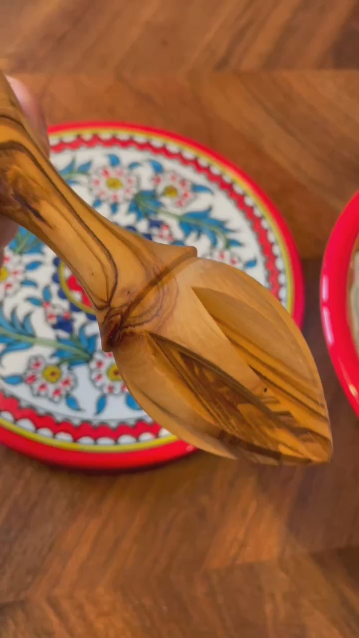 Sustainable wild olive wood lemon squeezer, beautifully hand carved to fair trade standards in Palestine, make the perfect addition to your home or gift for a lover on.