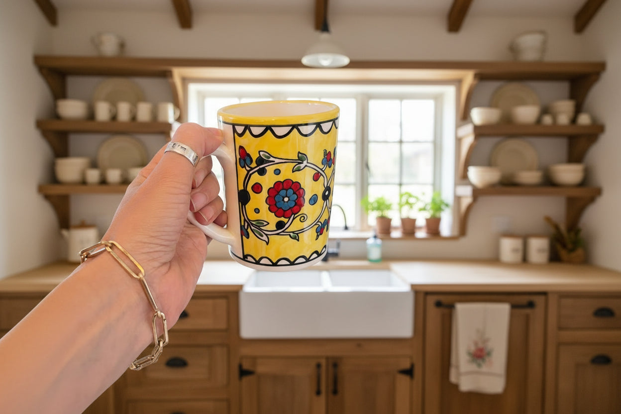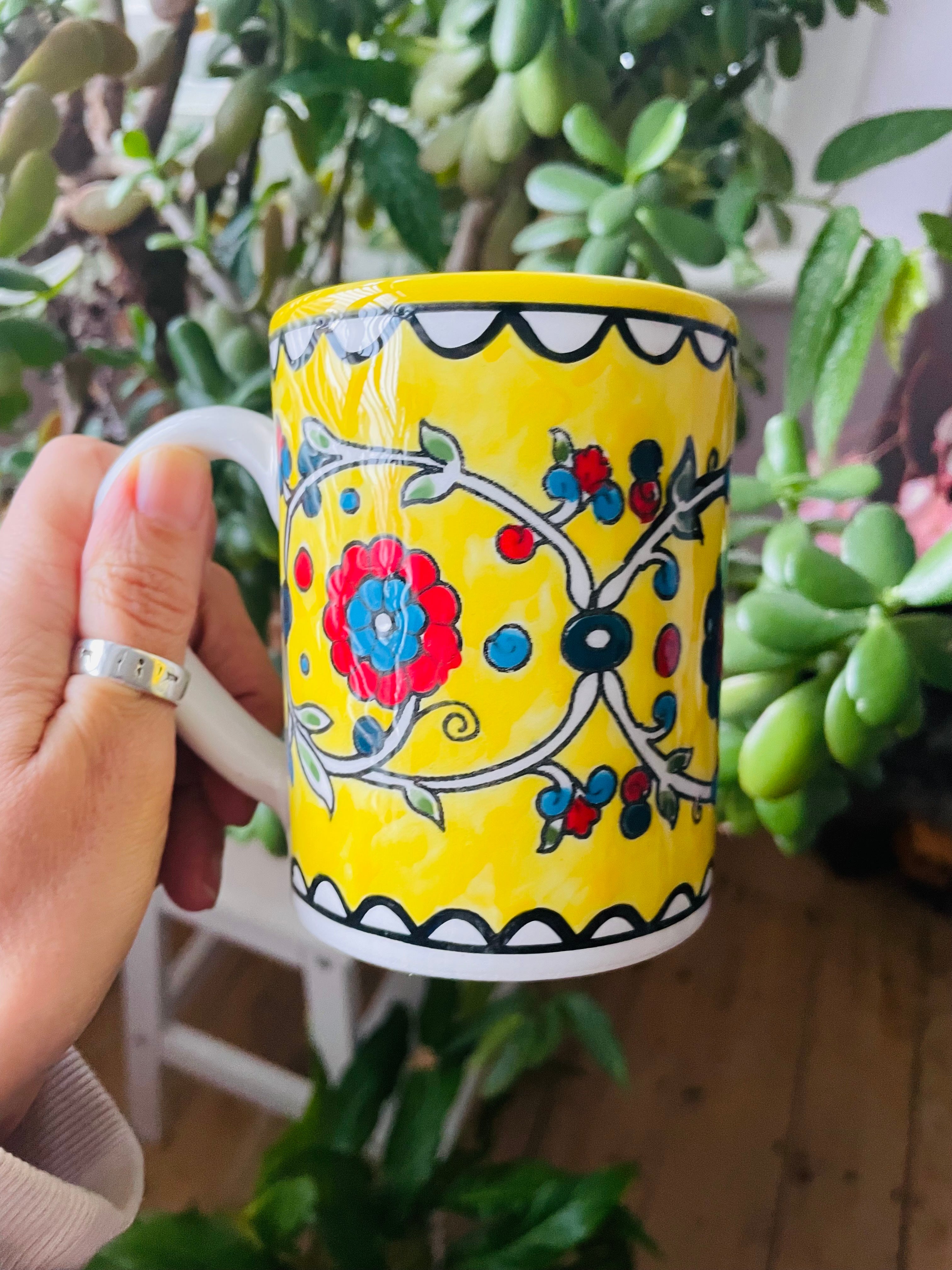 Handmade Ceramic Yellow Palestinian Floral Mug.