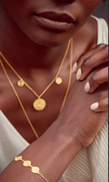 Luxurious, handcrafted necklace featuring 3 engraved discs on an adjustable chain, drawing inspiration from Indian Royalty. 100% recycled 18k gold plated 0.925 Sterling Silver. Earrings, rings and bracelets available in the collection.