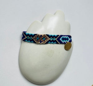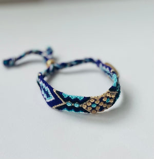 Our Wayuu bracelet features up to 30 Swarovski crystals that shine intensely. Each crystal is meticulously hand-placed, culminating in the centre with a figure that highlights the hand-woven pattern in each Wayuu textile.